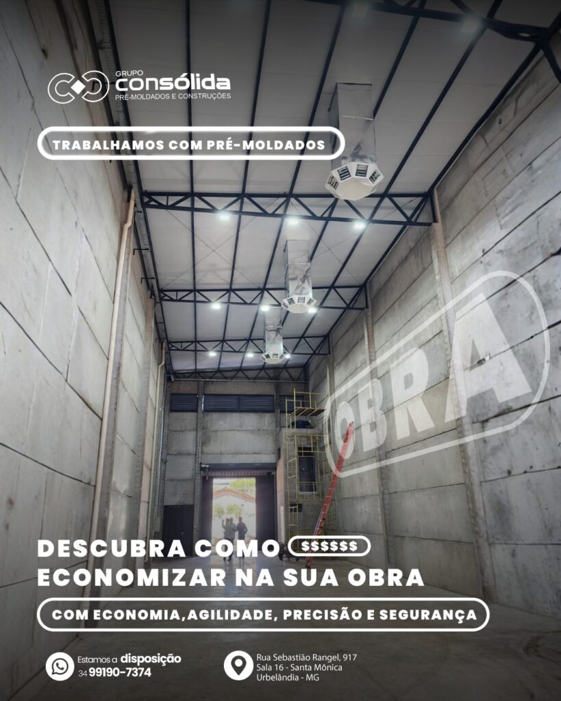 O Grupo Consolida oferece soluções em pré-moldados que garantem agilidade, precisão e segurança — reduzindo custos e otimizando o tempo da sua construção. Mais eficiência, menos desperdício e resultados que se consolidam em cada projeto. 💪✨ 📞 (34) 99190-7374 📍 Rua Sebastião Rangel, 917 – Sala 16 – Santa Mônica – Uberlândia/MG #GrupoConsolida #PréMoldados #ConstruçãoCivil #Engenharia #ObrasIndustriais #SoluçõesEmConcreto #EficiênciaNaObra #ConstruçãoComQualidade #EconomiaEPrecisão #UberlândiaMG #QuemEntendeConstrói